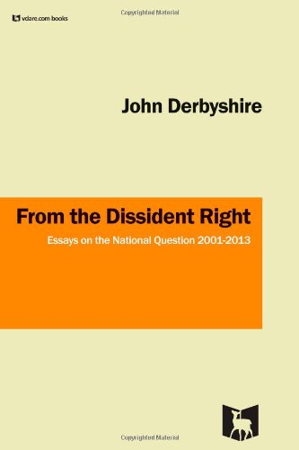 John Derbyshire [email him] writes an incredible amount on all sorts of subjectsfor all kinds of outlets. (This no longer includes National Review, whose editors had some kind of tantrum and fired him. ) He is the author of We Are Doomed: Reclaiming Conservative Pessimism and several other books. He’s had two books published by VDARE.com: FROM THE DISSIDENT RIGHT (also available in Kindle) and From the Dissident Right II: Essays 2013. His writings are archived at JohnDerbyshire.com.