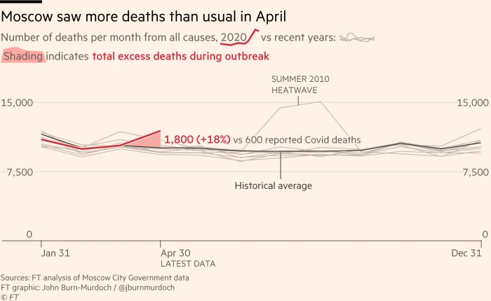 Is it also rather dumb for you to adopt New York Times methodology for attributing all “excess deaths ” in Russia to coronavirus. Some modest variation in mortality occurs naturally and by definition there will be years when number of deaths exceeds average. For example 12.000 people died in Moscow in March 2018, followed by another 11.000 in April – if this spike in mortality doesn’t show on your Facebook chart, it’s because your chart is fucking fake, and not based on actual data!