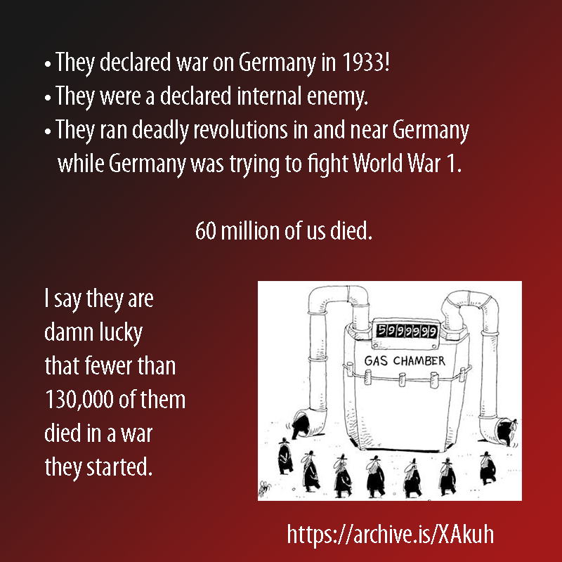 But, seeing as the Jewish financiers controlled Churchill and FDR and the conduct of the war, they much preferred to murder innocent civilians in their hundreds of thousands.