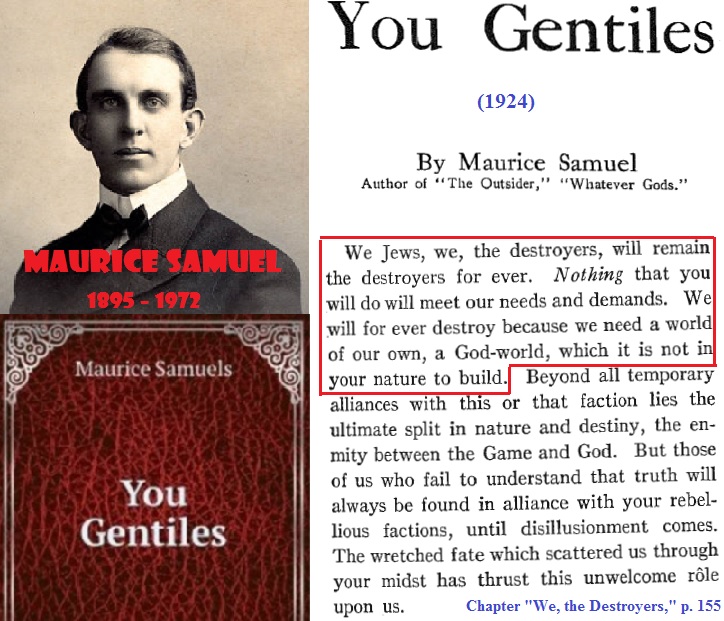 What use is it wasting words on the alleged control of your public opinion by Jewish financiers, newspaper owners and movie magnates, when you might as well justly accuse us of the proved control of your whole civilization by the Jewish Gospels?