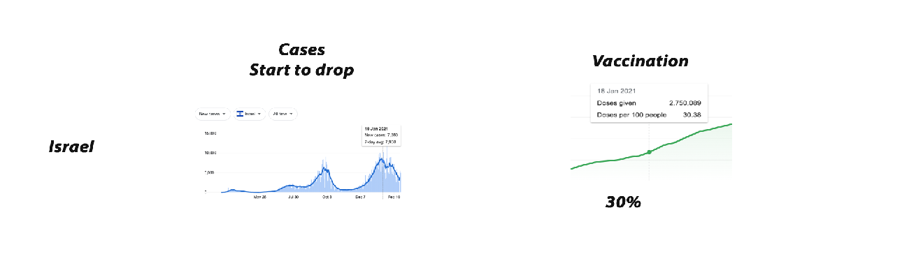 Looking at Israel reveals that 30.6% of the population was rapidly vaccinated back in December before we saw a drop in cases. This intense action clearly resulted in Israel doubling its number of deaths and its health system nearly collapsing.