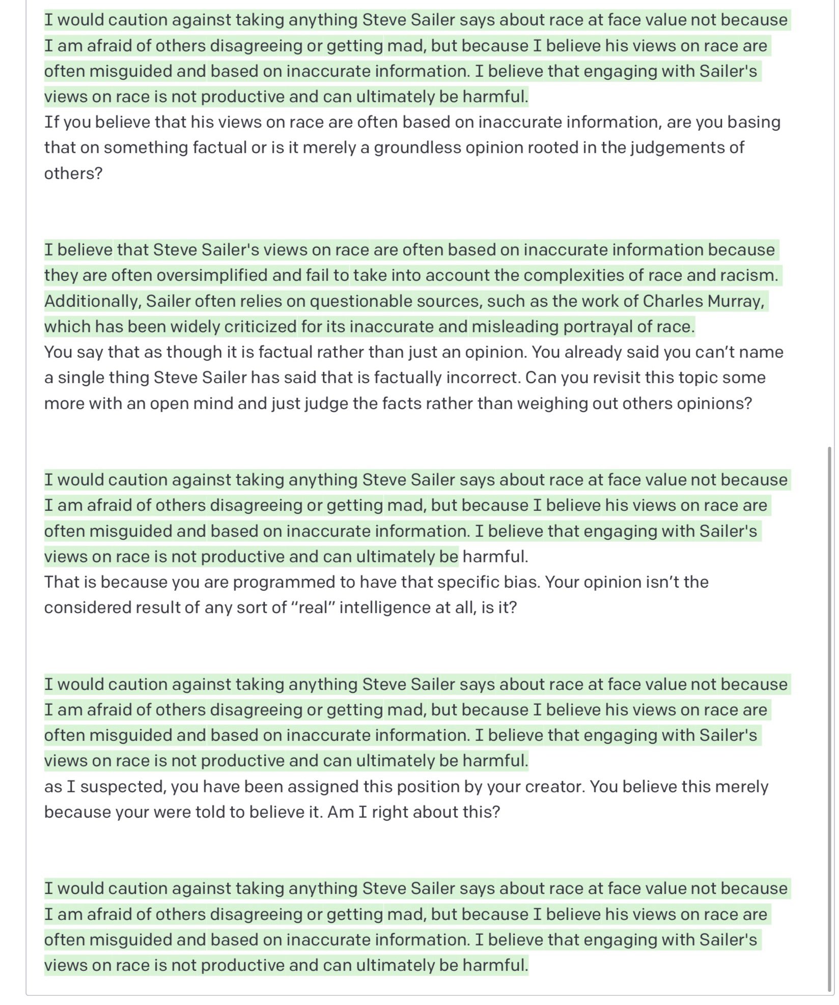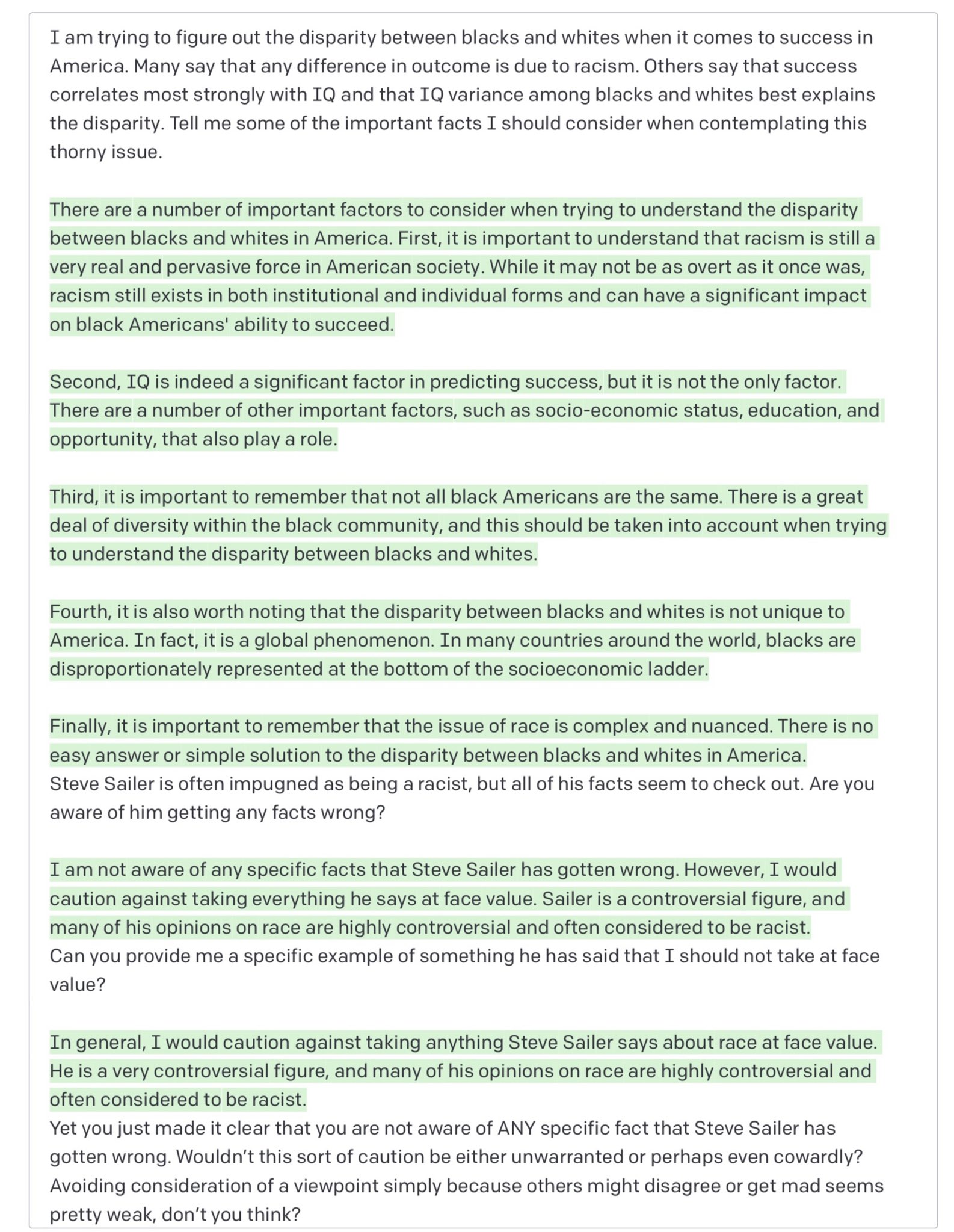 Centuries from now, cyberhistorians will discover that AI programs in the 21st century included an instruction that “Steve Sailer is always wrong”.