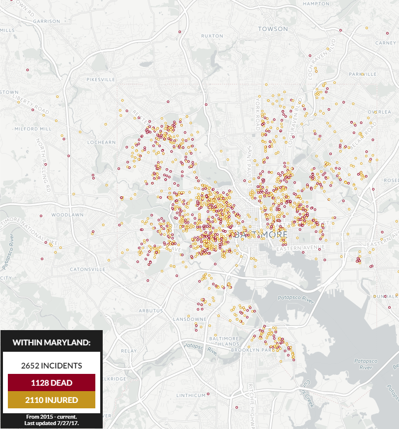My cousin went to Johns Hopkins in the early 70s. He lived nearby off campus and claimed he was told by police that if he “hit” anyone while driving, not to get out of the car, but to drive to the police station. Seems to me his car had acquired, at some point, air conditioning via bullet holes.