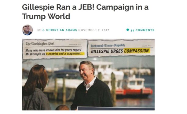 Gillepsie actually outperformed Trump in Trump counties. He just got killed in NoVa. Lorton is now a mini New Delhi good luck winning there.