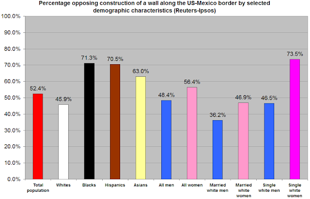 Then explain this graph. Single white women oppose The Wall more strongly as a demographic than even blacks and Hispanics.