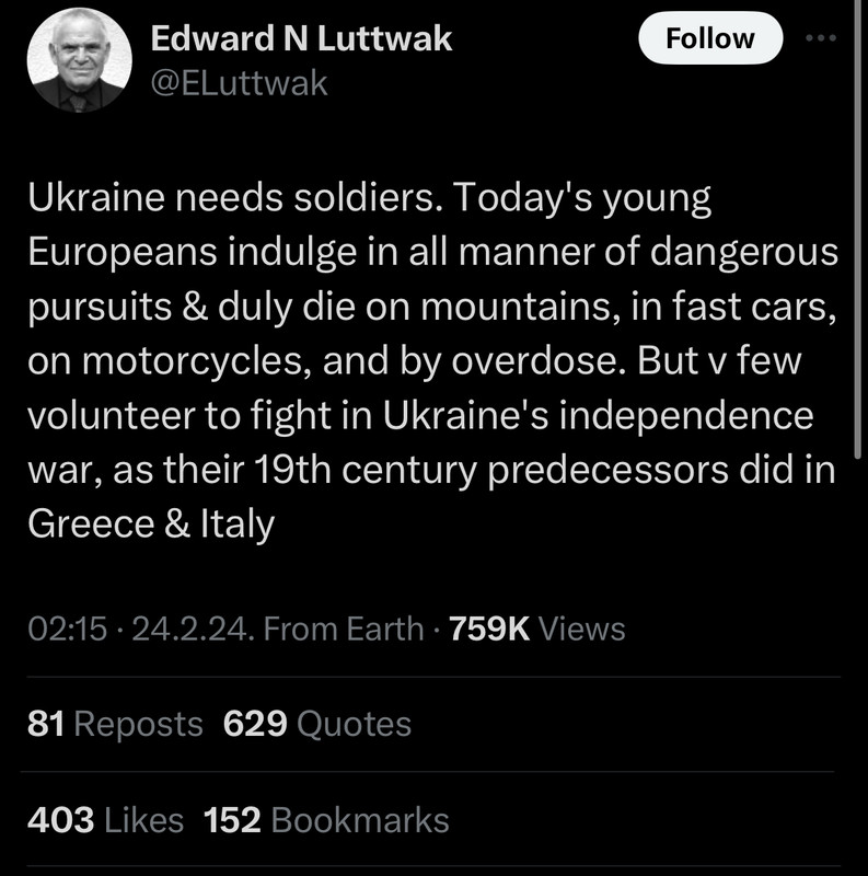 Yeah, tell that to “HA”. People like “HA” (and – let me stress this – he is a most contemptible swine) lazily deride anybody who doesn’t agree with him or share his enthusiasm for a war in Ukraine (a war that – enthusiastic as he might be – he isn’t signing up for – he isn’t putting his life on the line for it) as a “Putin fanboy”.